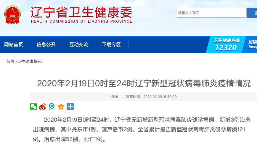 辽宁卫健委官网截图