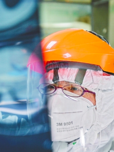 2月14日午饭后,张笑春在CT室查看上午拍的片子。胡冬冬 摄