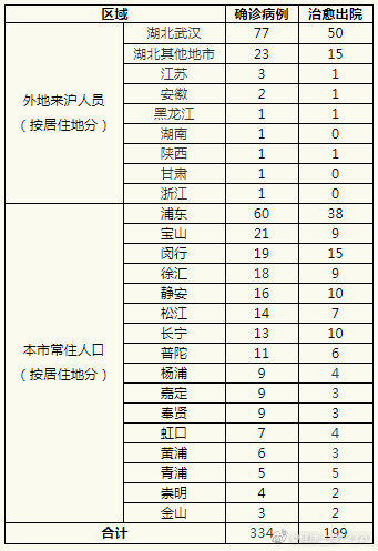 截至2月20日12时,上海市已累计排除疑似病例1979例,发现确诊病例334例。确诊病例中,男性173例,女性161例;年龄最大88岁,最小7月龄;144例有湖北居住或旅行史,33例有湖北以外地区居住或旅行史,157例有相关病例接触史;外地来沪人员110例,本市常住人口224例。具体情况如下图。