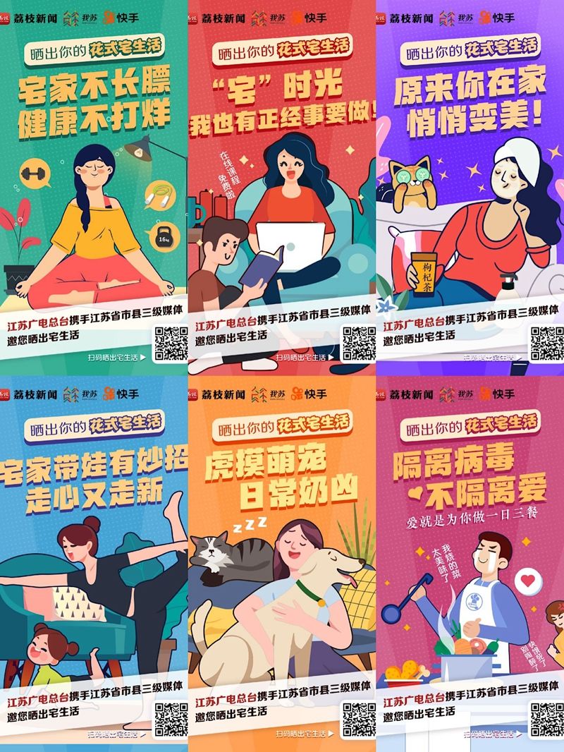 活动也获得了江苏省市县媒体的积极参与响应,特别是全省数十家县级融媒体中心,第一时间在客户端挂出活动页面呼吁网友参与活动,并进行了相关报道。同时,活动迅速热爆快手平台,来自全国各地的网友被圈粉,纷纷晒出有滋有味的“宅家秀”,引发了爆发式、浪潮式、涟漪式的传播效应。在这段特殊的日子里,大家“宅”出了健康,“宅”出了向心力,“宅”出了幸福感。