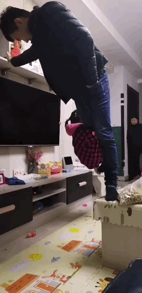 友情提醒:此项运动对爸爸的小腿力量和孩子的抓力均有要求,慎重模仿。