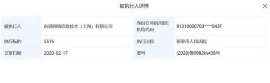 中国网科技2月20日讯 天眼查数据显示,近日,招聘网站前程无忧的运营主体前锦网络信息技术(上海)有限公司新增被执行人信息,执行标的为5516元,执行法院为新泰市人民法院。值得注意的是,自2019年以来,前程无忧已28次成被执行人,1次成失信被执行人。