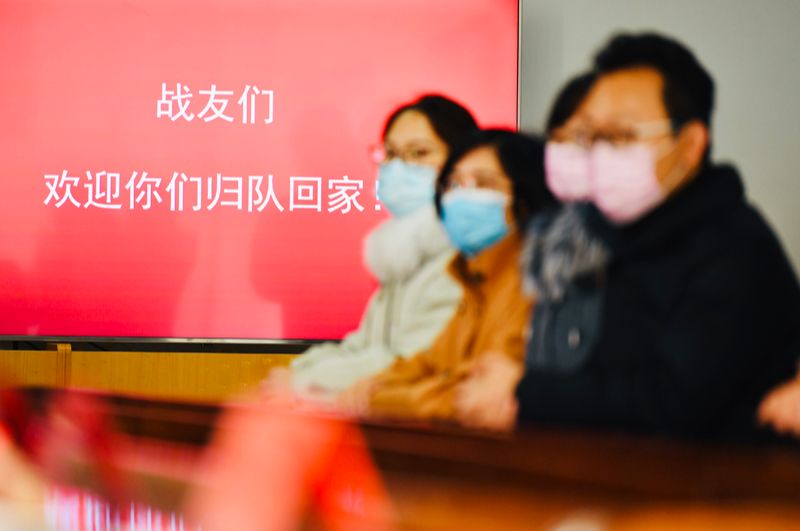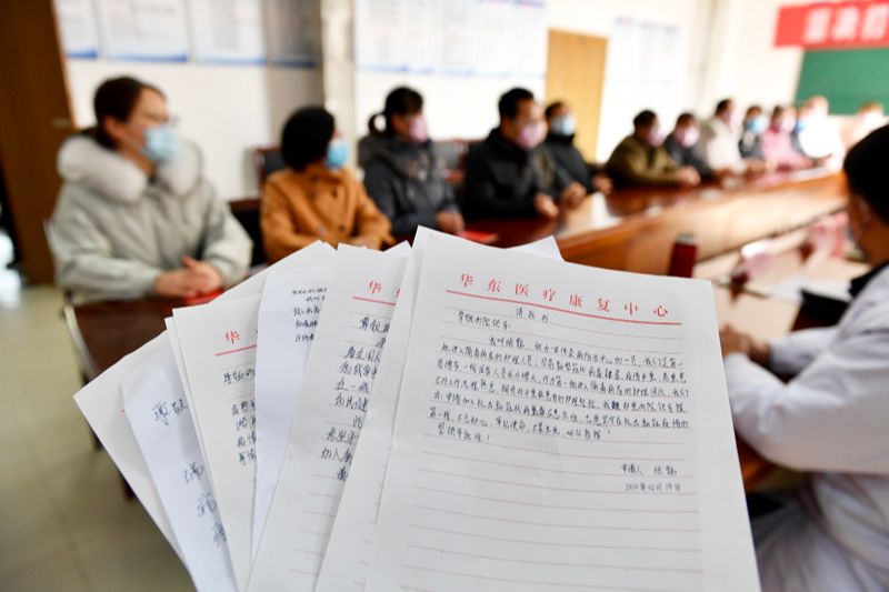 今天(2月20日)上午,宿迁市传染病医院首批从一线下来、刚刚隔离休整完毕的14名医护人员走出隔离区,再次递交请战书!