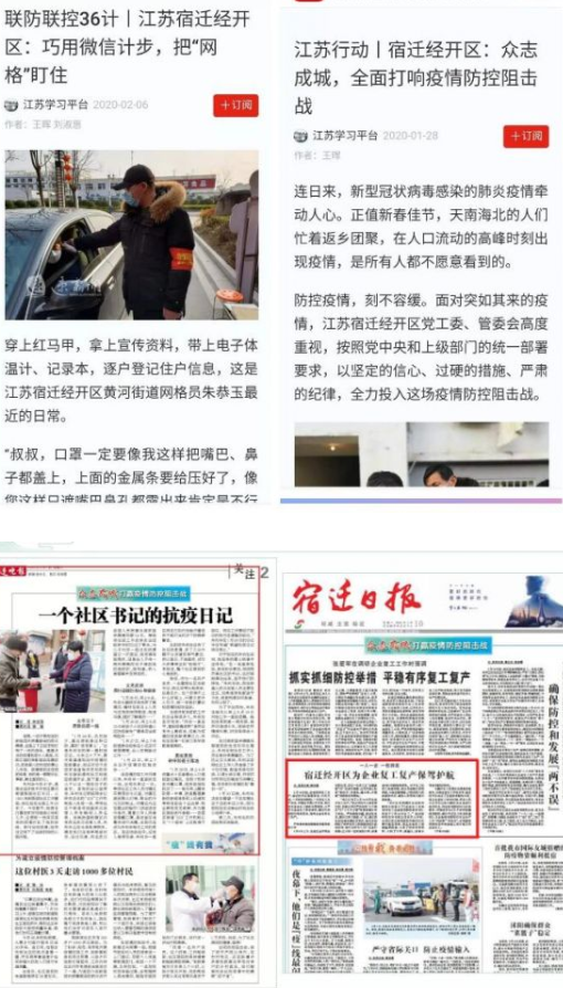 据统计,从大年初一到目前,经开区记者站共策划、撰写、刊发新闻作品78篇,拍摄图片350多张,有20多篇作品被《宿迁日报》《新华日报》《今日头条》《交汇点》《学习强国》等平台刊发推送。