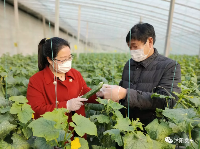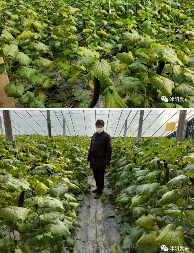 一个个水灵灵的黄瓜悬挂在藤蔓上