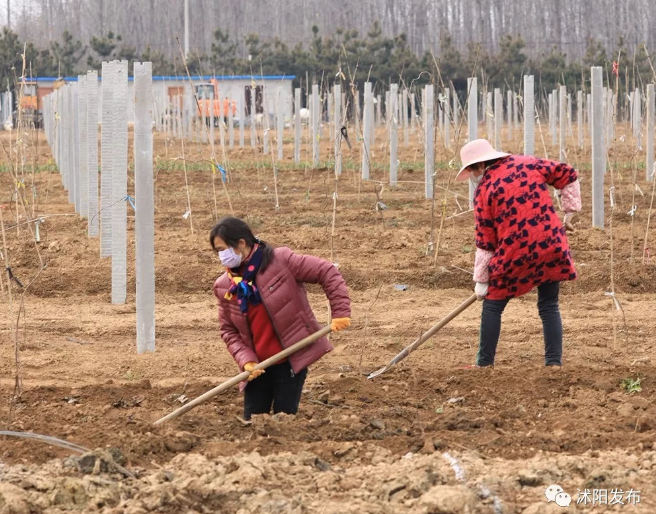 二兴村刘永昌夫妇正在地里嫁接榆叶梅