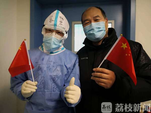 我苏网讯 2月20日,对于同济医院中法新城院区C8西病区来说又是一个有意义的日子,在与病魔抗争长达18天的两位新冠肺炎重症病人今天康复出院了。一早收到出院通知的两位病人十分开心,激动,他们非常感激第三批江苏援湖北医疗队所有队员。出院前,一位患者和我合了影,在场的其他病人和医护人员更是激动地唱起了“五星红旗我为你自豪......”,寒冷冬日,太阳暖暖地照进我们心里,温暖如春。