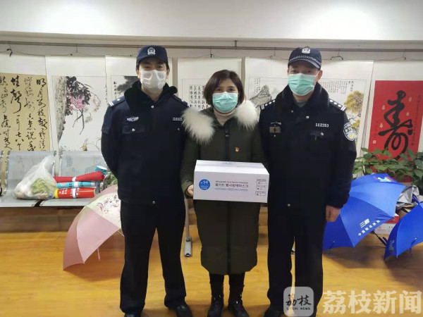 16时,爱心韩籍华人陈女士托人为江一社区捐献口罩