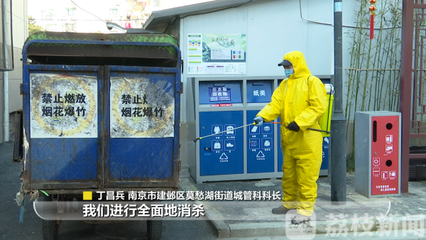 像茶亭村这样的老旧小区,南京市建邺区莫愁湖街道共有94个,街道派出城管队员对各个小区出入口进行监管。南京市建邺区莫愁湖街道城管科科长丁昌兵表示:“ 所有的门全部封起来,只留了一个门,城管队员对小区所有垃圾桶、办公场所、车棚等公共地方进行全面消杀。”