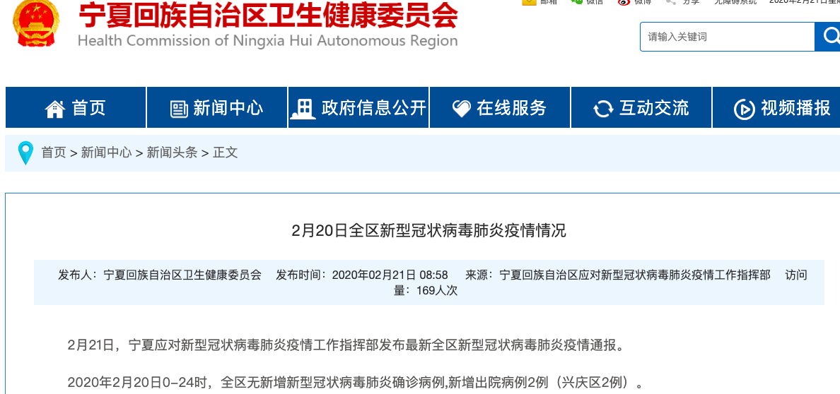 宁夏卫健委官网截图