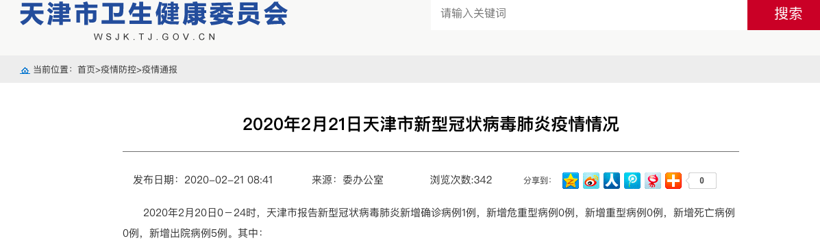 荔枝新闻讯 2月20日18时至2月21日6时,天津市无新增新冠肺炎确诊病例。