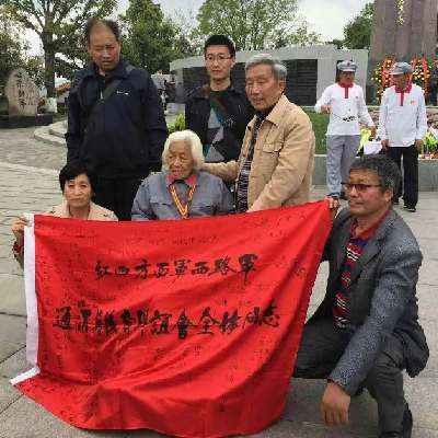 2017年,牟炳贞(前排中)来到巴中将帅碑林缅怀战友
