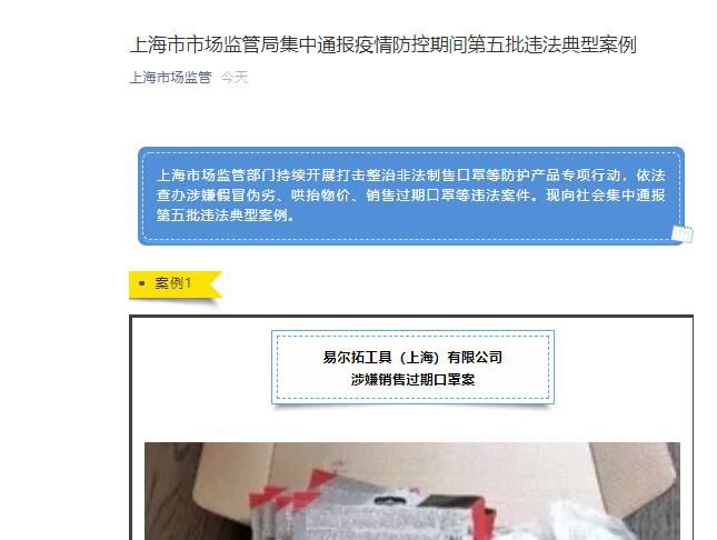 易尔拓工具(上海)有限公司涉嫌销售过期口罩案