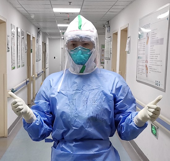 刘靖圆,军队支援湖北医疗队队员、火神山医院护师,来武汉之前她是空军第986医院的一名文员护士长。1月24日,一声令下,她没敢告诉家人就写了前去一线抗击疫情的请战书,随队奔赴武汉。她说:“我的内心充满了对家人深深的愧疚......但我仍不后悔我的决定!作为一名党员,既然我今生有缘穿上这身戎装,既然我选择了医务工作者这份职业,那么在一线、在患者最需要我的时候,这是我唯一的选择!无论是曾经的抗震救灾,还是现在的抗击新冠肺炎,我保证一定完成任务,不辱使命!”