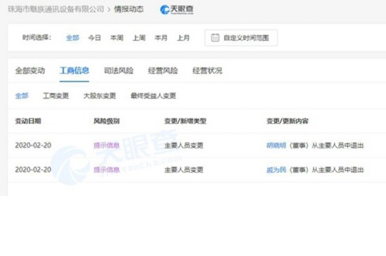 天眼查数据显示,近日,珠海市魅族通讯设备有限公司发生工商变更,蚂蚁金服CEO胡晓明卸任公司董事。