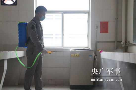 留下来,意味着会很忙。何江每天早上都要提前半小时来到食堂,给隔离人员准备送餐。50多户居家隔离点,挨个走下来,等回到连队预留的饭菜已变得微凉。匆匆吃几口,就到了给办公区和生活区消毒的时间,这也是他主动负责起的工作。一日三餐,每天两次消毒,疫情防控工作中,留下了他的身影。