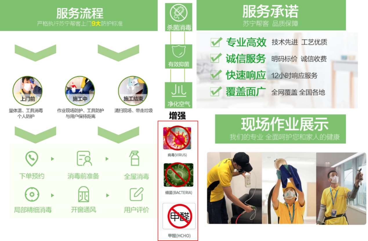 疫情当前,为了更好保障市民居家环境,南京苏宁帮客全面升级服务流程,以“灭菌消毒”为导向,确定了“四大防御措施”,让病毒藏无可藏,切实保障用户的利益与安全健康。