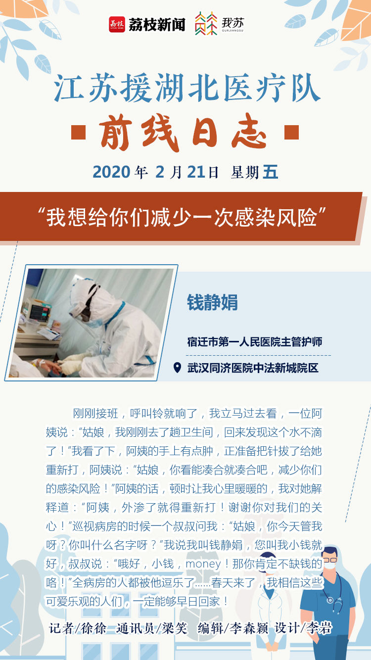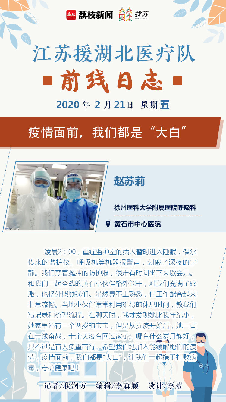 即日起,荔枝新闻&我苏网推出《江苏援湖北医疗队前线日志》,记录抗疫一线的故事。