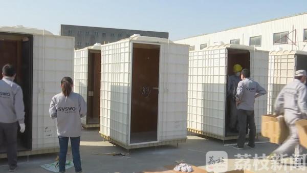 2月20日下午,禧屋家居科技有限公司厂区内,工人们正忙着组装部件。禧屋家居科技有限公司首席执行官刘志宏介绍:“平常我们都是把散件发到现场,再由工人去安装,因为武汉疫情特殊情况,不允许工人到现场去,我们决定在工厂全部装完后运到现场,现场只是简单地接一下上水、下水、电,大概花个半小时就可以马上投入使用。”