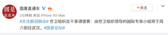 世卫组织总干事谭德赛:由世卫组织领导的国际专家小组将于周六前往武汉。