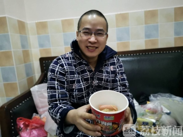 赵成林是常州一院重症医学科护师,目前正在支援武汉市江夏区第一人民医院。2月20日,是他到达武汉第24天,也是他34岁生日。下午1点半,他结束早班护理工作回到驻地,同事陆素英给他“做”了碗生日面!一碗方便面加一根火腿肠。