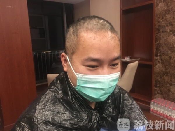 上临床前,赵成林特意剪了个光头。“突然发现自己光头也挺好看的。没有理发用的铺单,我们就用训练后废弃的一次性手术衣替代。别说,效果还真不错,姑娘手艺也很精湛。”赵成林笑道。在层层防护服、护目镜和双层手套下,赵成林凭借过硬技能,扎针一针见血,他希望尽自己最大努力,给患者减少反复扎针穿刺的痛苦。
