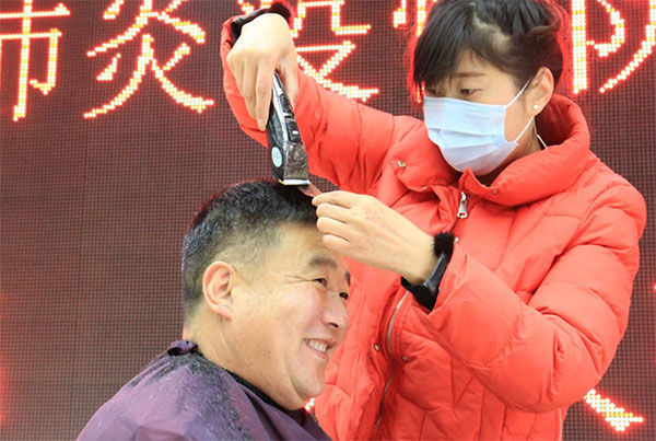 2月21日,连云港东海县一名爱心理发师来到公路管理站,一块围布、一把剪子、一个剃须刀,为轮班下来的交通执法人员义务理发。“一个月没有剪过头发,一直在上班,也没有地方剪。剪得很好,跟我原来剪得还差不多。”刚理完发的马继建高兴地照着镜子说。