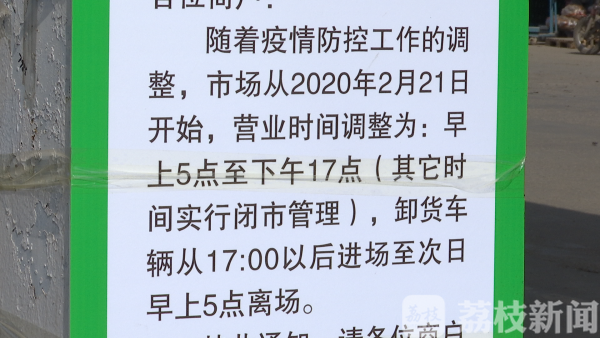 除了蔬菜市场的营业时间延长,从2月24号开始,这里的果品市场、水产市场、副食品和粮油市场的营业时间,也将分别延长。南京市众彩传媒有限公司副总经理赵广俊介绍:“水果市场是早上6点到早上11点营业,副食品市场在24号以后,早上9点到下午3点营业,水产市场南区是早上4点到下午3点营业,北区是早上1点到早上8点营业。”