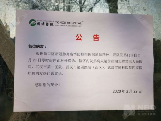 今日(2月23日),有网友微博发布消息称,华中科技大学同济医学院附属同济医院(以下简称同济医院)23日起停止发热门诊,所有发热门诊转移到四家定点医院,并称武汉市大部分大型综合医院将恢复正常接收病人。