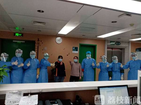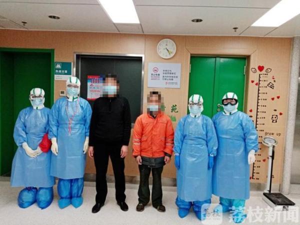 2月23日下午,在武汉市第一医院,江苏援助湖北医疗队徐州医疗分队管理的四名新冠肺炎患者治愈出院,这是徐州医疗团队接管病区后的首批出院患者。