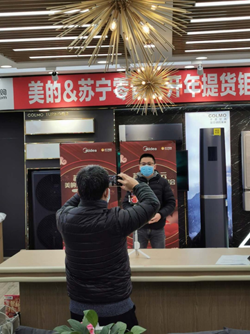 2月23日,南京苏宁零售云美的订货会于苏宁易购新街口云店正式召开。与以往人群熙攘的订货会不同,在疫情的影响下,此次零售云订货会采取了直播的形式,苏宁易购零售云相关负责人与美的集团空调品类的负责人一起参与了此次订货会。直播观看人次破千,互动不断。早上9:30,订购还未正式开始,零售云小老板们的订单就蜂拥而至。