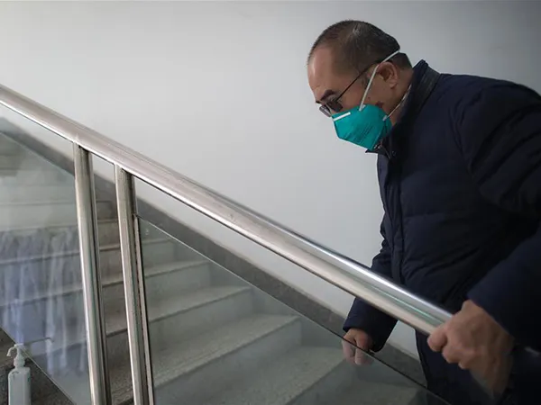 ↑由于患渐冻症,张定宇爬楼十分不便。