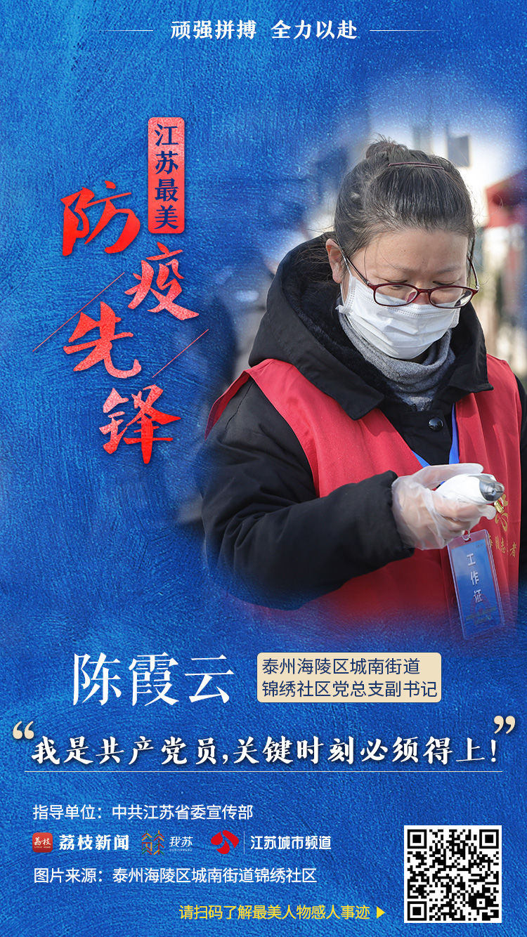 在防控新冠肺炎疫情这个没有硝烟的战场上,江苏省内各条战线响应习近平总书记号召,落实省委、省政府部署,始终把人民群众生命安全和身体健康放在第一位,尽职尽责、严防死守、不怕牺牲、连续作战,在社区防疫、交通卡口、志愿服务等疫情防控第一线,构筑了联防联控、群防群治、牢不可破的人民防线。2月25日,中共江苏省委宣传部通过信息云技术,发布了第三批在战“疫”斗争中涌现出来的先进典型事迹。让我们一起走近这些“最美防疫先锋”,倾听他们的战“疫”故事。