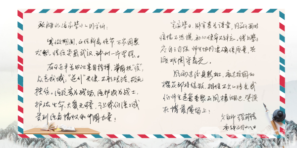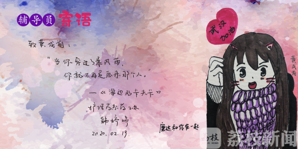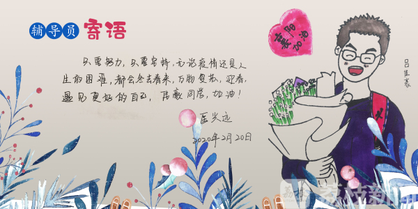 院长张前德给学生们手写两个版本的寄语,从晚上9点到凌晨12点写了第一版。第二天早晨起来字斟句酌还是不满意,又重写了第二版。最后一段他这样写道:“风雨过后见彩虹,康达校园的樱花即将绽放,相信不久的将来,我们师生定会重聚在凤栖湖边,笑谈在博爱广场。”
