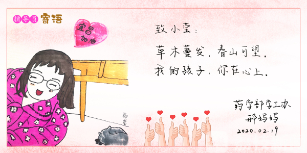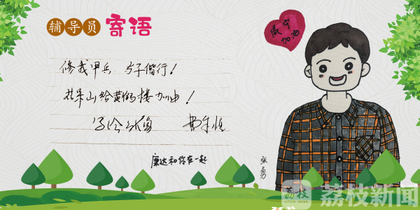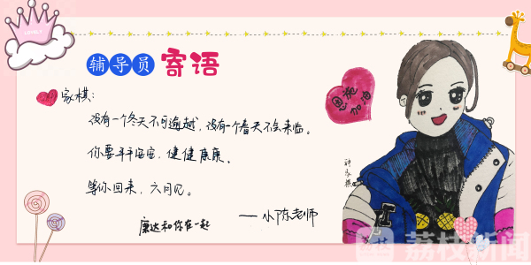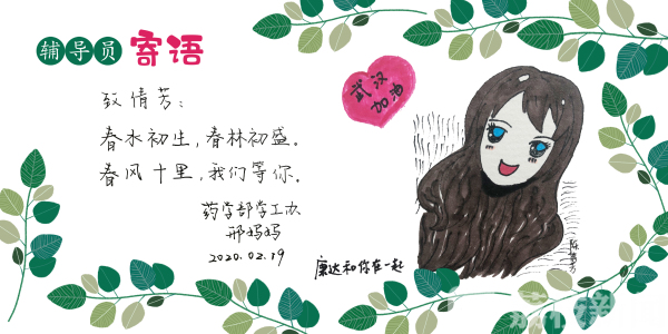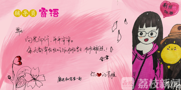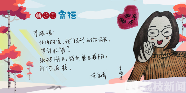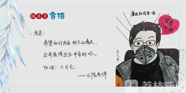 每一幅漫画上,都有辅导员用心的一段文字。其中一个辅导员落款为“邢妈妈”,她说:“以前给学生们发通知,通常都是称呼‘同学们’,自从有了二宝,更喜欢称呼‘孩子们’,就会有学生私下叫我‘邢妈妈’。我很喜欢这个称呼,辅导员很多时候就像妈妈一样事无巨细,为学生引路,指导他们学生成长。”