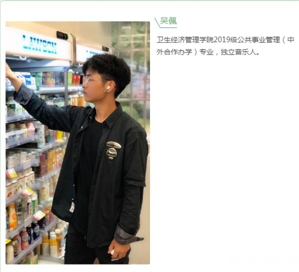 据悉,吴佩 卫生经济管理学院2019级公共事业管理(中外合作办学)专业,独立音乐人。他告诉记者,这段时间在新闻中看到很多医务工作者勇敢逆行、冲往一线,既有青年医务人员在奋战,也有老一辈的医务人员在坚守。作为南中医的一员,他也希望为此次疫情做些力所能及的事。吴佩希望用这首音乐来温暖医务人员,鼓舞他们,向前线的医务工作者们致敬!他说,当然,也还有很多事情需要我们青年人去做、去努力,一起加油吧!