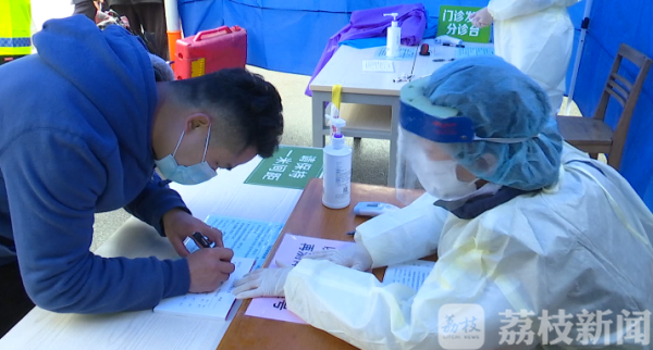 这两天,江苏省的各家医疗机构逐步恢复正常诊疗秩序,南京市各大医院的门诊情况如何?在东南大学附属中大医院,预检分诊台被设置在门诊大厅外,每一位就诊者必须佩戴好口罩,并依次通过门外设置的红外测温仪,测温正常后,还需要按照要求填写“门诊患者筛查表”才能进入医院。