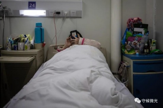 2月21日,武汉火神山医院感染八科,一位年轻的患者在病房内休息。出于安全考虑,患者病愈出院后,除了贵重物品外的大部分个人物品都无法带出病区。中青报·中青网记者 李峥苨/摄