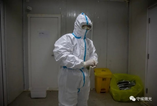 控制传染的弦在这里时刻紧绷着。防护用品的穿和脱都有严格的顺序,带图示的操作提示被打印贴在墙上,随处可见。进入隔离病房前,医护人员需要脱掉自己的服装,换上统一清洗消毒的衣服和胶鞋,按照严格的顺序分区域先后穿上防护服和隔离服,戴上两层口罩、头套,3层手套、鞋套,再戴上护目镜和面罩。期间需要反复消毒和确认防护细节,有时需要他人配合,才能完成整套作业。