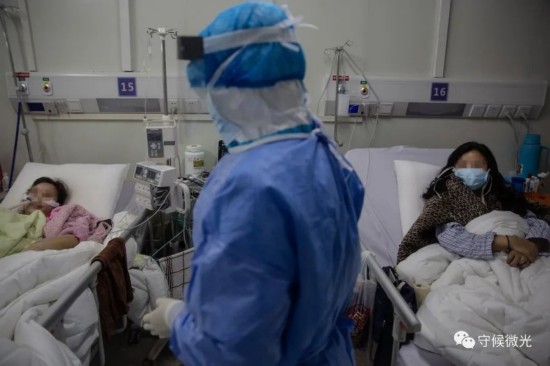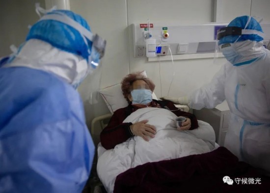 隔着好几层口罩,病房里医护和患者的沟通依然顺畅。感染八科一区的护士长左卉川来自河北,病区里许多老年患者只会说湖北方言,同病房的年轻患者会主动在查房时充当翻译,把老年患者的用药、进餐情况记下来告诉医护人员。医患之间还建起了微信群,交流治疗感受。
