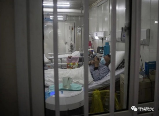 2月21日,武汉火神山医院感染八科,新冠肺炎患者在病房内休息。中青报·中青网记者 李峥苨/摄