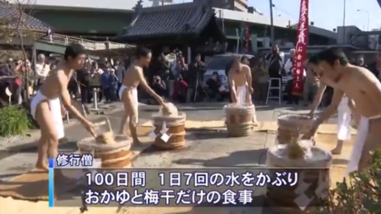 据日本《每日新闻》消息,“大荒行”从每年11月1日开始,至次年2月10日,100天时间,在日本千叶县市川市的法华经寺进行。2019年度全日本共120名修行僧参加。他们从凌晨3点至半夜12点一直进行水行、诵经等活动。每天需用冷水泼身7次,睡眠仅2小时,饮食只有粥和梅干,修行十分严格。