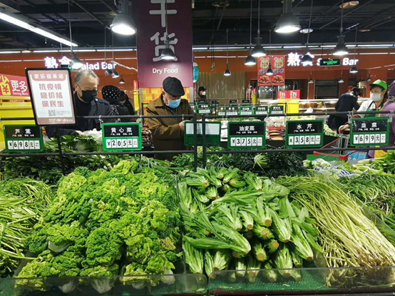 面对疫情初期市民大量囤积商品的行为,家乐福、苏宁小店纷纷打出“不打烊、不断供、不涨价”的口号,为市民吃下“定心丸”。为了满足疫情期间大家囤货的需求,家乐福与苏宁菜场紧急调货,与百大供应商争取货源,在稳定物价的同时保障各类菜品的及时供应。