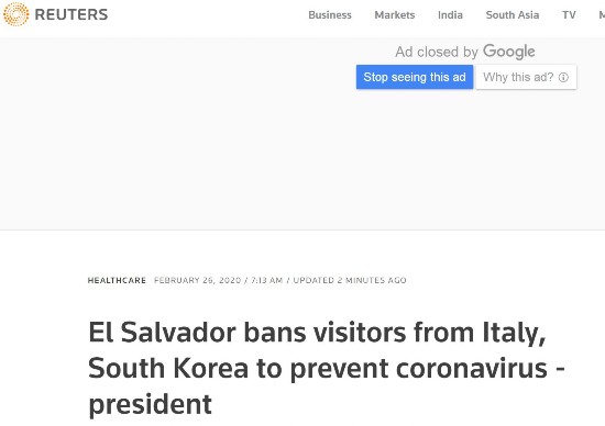 据路透社报道,萨尔瓦多总统纳伊布·布克莱当地时间25日表示,萨尔瓦多将禁止来自意大利和韩国的人士入境,以防止新型冠状病毒的扩散。