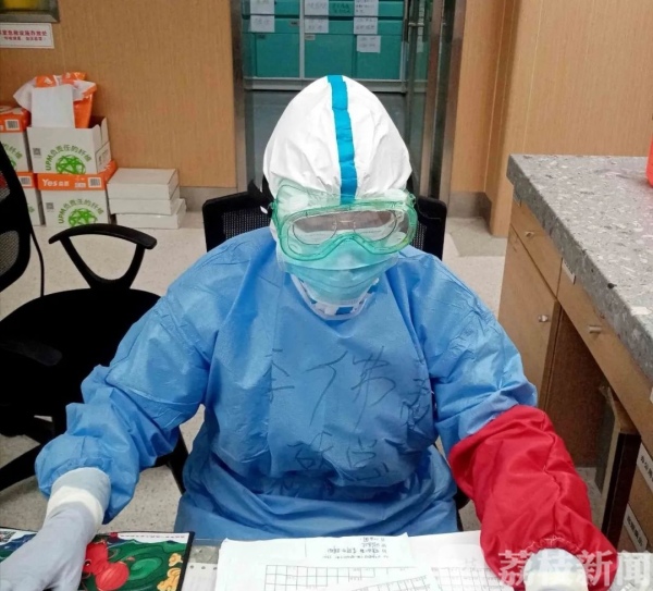 跟李海泉主任查房时,有些房间里病人情况相对平稳的,他会自己进去查房,让我在门外等着,减少和病人的接触;施萍主任每天都会问我,上班怎么样,适不适应,然后告诉我一些防护小技巧每个班次需要注意的地方;接我下一班的杨洪娇,我们“素未谋面”,但每次交完班后,她都会让我快点回去休息,没有完成的任务她会来查缺补漏……大家的关心让我心里暖暖的。