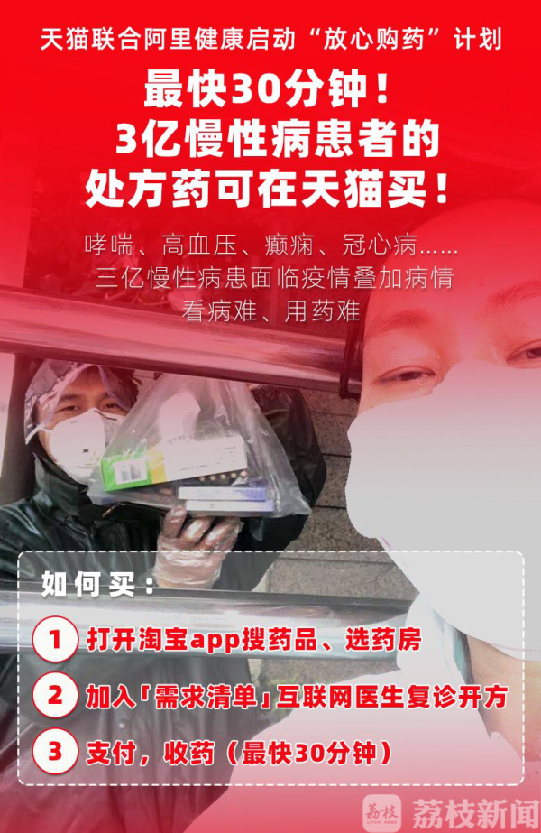救命药来了!阿里健康和天猫联合宣布启动“放心购药”计划:2月26日起,全国慢性病患者可以在天猫上购买处方药,在南京、北京、上海、杭州、广州等十座城市的病患最快30分钟就可以收到药。