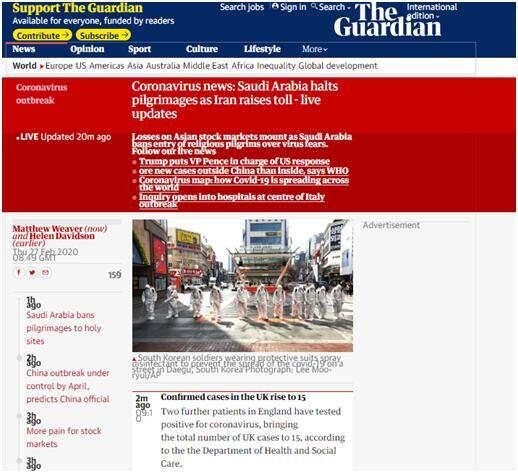 英国《卫报》刚刚报道称,英国新增两例新冠肺炎确诊病例。据英国卫生和社会保障部数据,英国目前累计确诊病例数达15例。