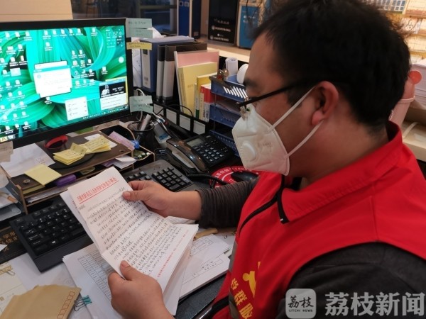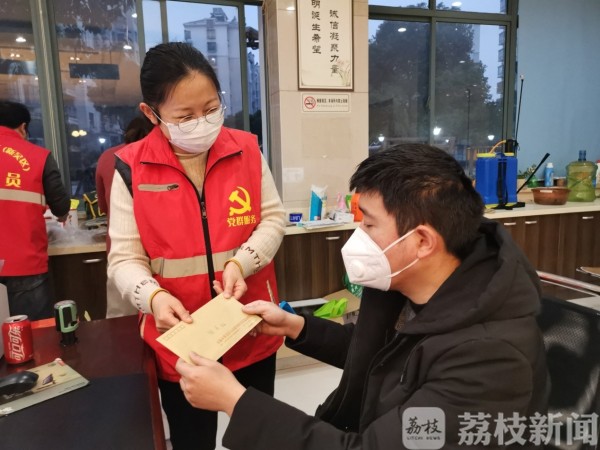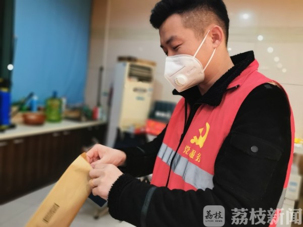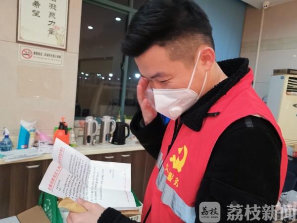 我苏网讯 2月26日下午,在无锡市新吴区新安街道新安花苑第一社区大厅里,连续一个多月奋战在防控一线的男同胞们,难得停下了脚步。因为他们都收到了一个“神秘”的信封,小心地拆开信封、轻轻地翻开折起的信纸、认真地低头阅读……