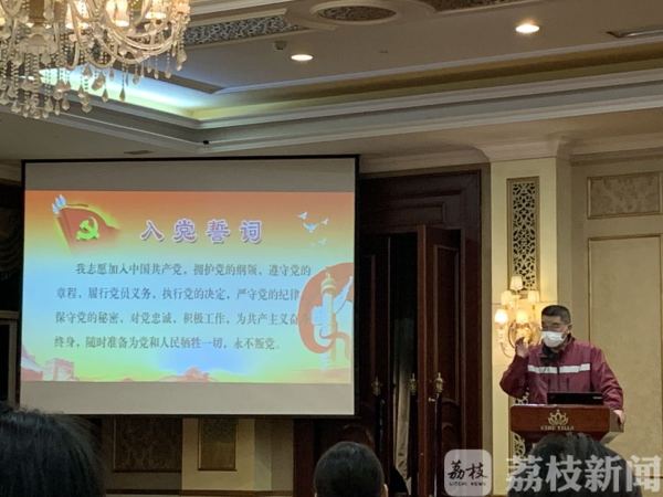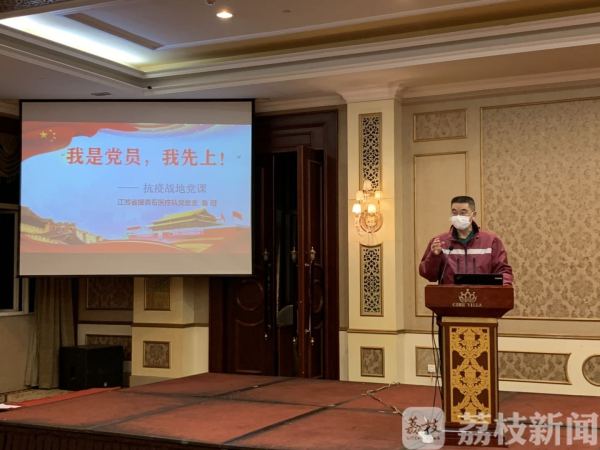 2月26日晚,在江苏对口援黄石医疗队驻地,江苏省支援湖北疫情防控前方指挥部副总指挥、江苏对口支援黄石医疗队临时党总支部书记、南京医科大学副校长、逸夫医院院长鲁翔,给前线各支部党员、积极分子以及重点培养对象讲授“我是党员,我先上”主题党课。疫情当前,情况特殊,参加党课的同志自觉将座位都间隔在一米以上。