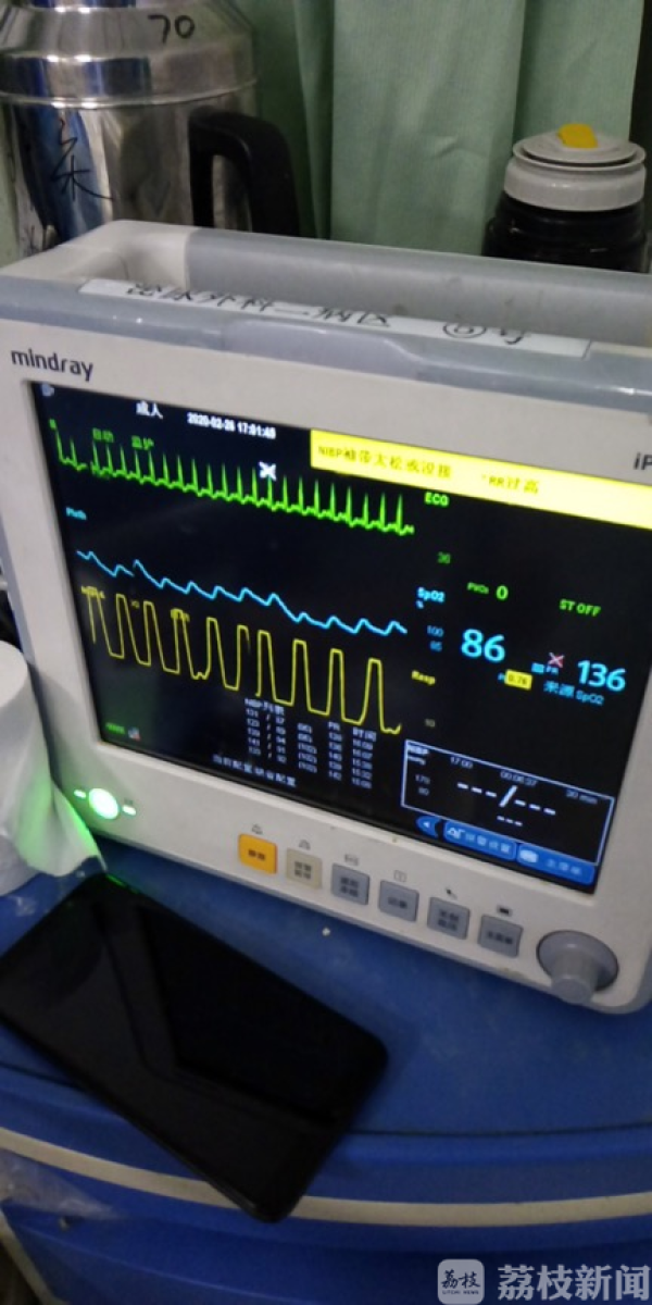 但完成工作交接后不久,70床管床护士吕晓霞跑来对我说,70床在小便后血氧饱和度下降至76%。我立即冲至病人床边检查呼吸机及监护仪运转情况,没有发现异常。之后我们赶紧汇报医生,立即给患者抬高床头,安慰、指导患者呼吸,同时查看呼吸机各项参数及指标。